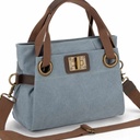 Conçu en toile de coton délavée et en croûte de cuir, ce sac offre un contact doux et naturel. Les anses, gainées en toile et en cuir, permettent un confort optimal à porter. Le sac comprend cinq poches intérieures dont deux zippées, une grande poche sur la face arrière avec un bouton aimanté, et une grande poche supplémentaire sur la face avant avec fermeture en garrot.